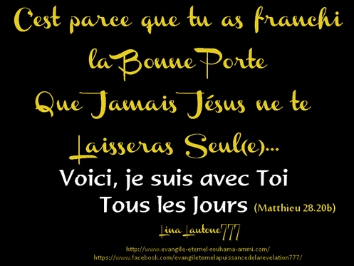 RÉJOUIS-TOI DE CE QUE TU AS FRANCHIE LA PORTE ET QUE TU TE TROUVE